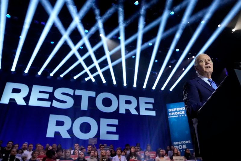 “Today, Roe v. Wade is no longer the law of the land. And that’s because of one person: Donald Trump,” Biden said. “Now, millions of women cannot access critical health care, with too many being turned away from emergency rooms. States have imposed abortion bans so restrictive that they have no exceptions for rape or incest. And doctors are being threatened with felony charges and time in prison simply for caring for their patients.”