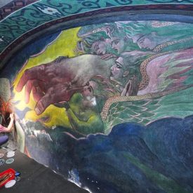 The late artist Maxo Vanka created the mural in 1941, based on a scene from the Book of Exodus. It’s one of 25 murals that cover the walls and ceilings of St. Nicholas Croatian Catholic Church.
