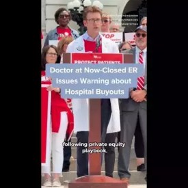 Max Cooper, a former emergency room doctor at the now-closed Crozer Hospital in Delaware County, spoke about the dangers of private equity firms purchasing hospitals and then shutting them down for profit. Prospect Medical Holdings, which closed four Delaware County hospitals in the last three years, purchased Corzer in July 2016 for $300 million. The…