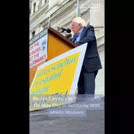 Senator Bernie Sanders stands in solidarity with union workers and allies at a May Day Rally in Philadelphia, rallying behind the message: “For the workers, not the billionaires.”