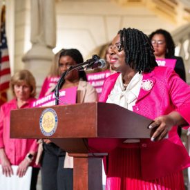 Amanda Zurawski and members of the Pennsylvania Women’s Health Caucus warned voters on Thursday Project 2025 can ban abortion nationally.