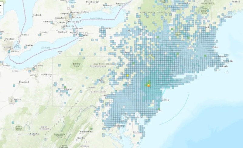 The US Geological Survey reported a quake with a preliminary magnitude of 4.8, centered near Whitehouse Station, New Jersey, or about 30 miles east of Easton and 60 miles north of Philadelphia. The agency’s figures indicated that over 42 million people might have felt the rumbling.