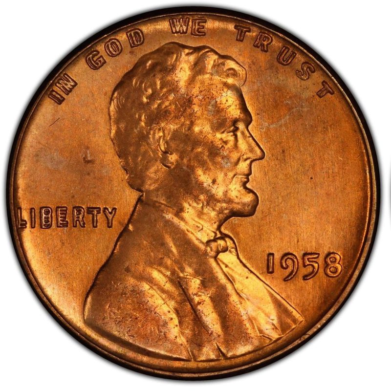So-called “wheat pennies” get their name from the back of the coin having stalks of wheat encircling the “One Cent” text. They were produced from 1909 to 1958. After that, the wheat stalks were shorn and pennies began displaying an engraving of the Lincoln Memorial.