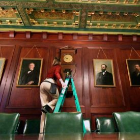 Visitors to Pennsylvania’s Capitol are drawn to its priceless artwork, polished marble and intricate carvings, but hidden behind the doors of some of its most ornate offices and chambers are another treasure: hundreds of antique clocks that were part of its original design.