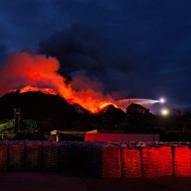 Inferno rips through mulch facility near Spring Grove on Sunday as high winds fan flames