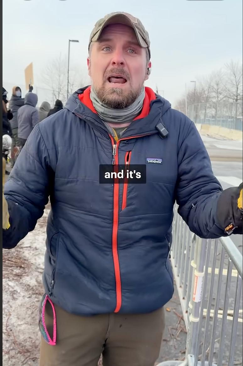 Austin described a prior arrest for protesting ICE in Minneapolis to a reporter, after which Austin said he was shackled for hours.