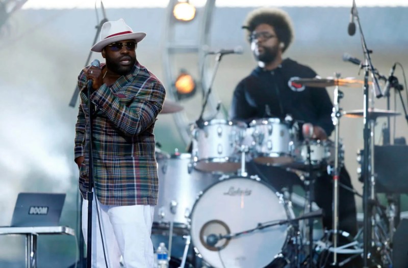 FILE – In this July 4, 2014 file photo, Tariq "Black Thought" Trotter, left, and Ahmir "Questlove" Thompson of The Roots, perform during an Independence Day celebration in Philadelphia. The Roots are tapping into their resources to help raise funds for their high-school alma mater in Philadelphia. The Grammy-winning hip-hop band created the CAPA Foundation after learning that $1.1 million had been cut from the budget of the Philadelphia High School for Creative and Performing Arts. (AP Photo/Matt Rourke, File)