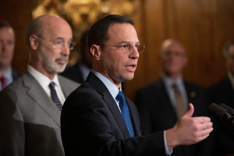 Democratic Attorney General Josh Shapiro was elected to a second term in November and took the oath in the Pennsylvania Judicial Center. Shapiro issued a report on his own first term Tuesday.