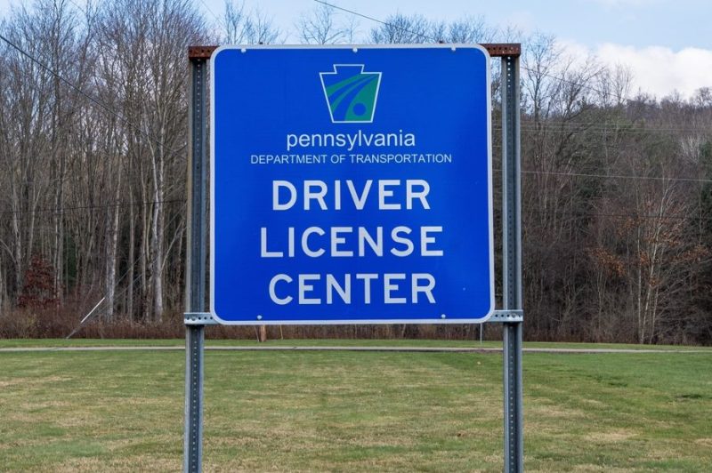 A sign for the Pennsylvania Department of Transportation, PennDot, driver license center on a sunny fall day. (Shutterstock)
