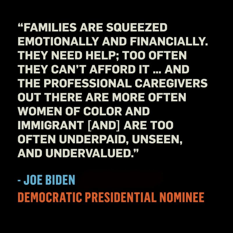 “Biden believes that if we truly want to reward work in this country, we have to ease the financial burden of care that families are carrying,” his campaign states, “and we have to elevate the compensation, benefits, training and education opportunities for certification, and dignity of caregiving workers and educators.”