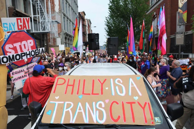 PHILADELPHIA, PENNSYLVANIA – JUNE 29: People protest outside the Moms for Liberty Joyful Warriors national summit welcome reception at the Museum of the American Revolution on June 29, 2023 in Philadelphia, Pennsylvania. The self-labeled "parental rights" summit is bringing school board hopefuls from across the country where attendees will receive training and hear from Republican presidential candidates which includes former U.S. President Donald Trump, Florida Gov. Ron DeSantis and former South Carolina Gov. Nikki Haley. The summit, which is being held in an overwhelmingly Democratic Philadelphia, has drawn protestors since the event was announced due to their pushing of book bans accusing schools of ideological overreach, including teaching about race, gender, and sexuality. (Photo by Michael M. Santiago/Getty Images)