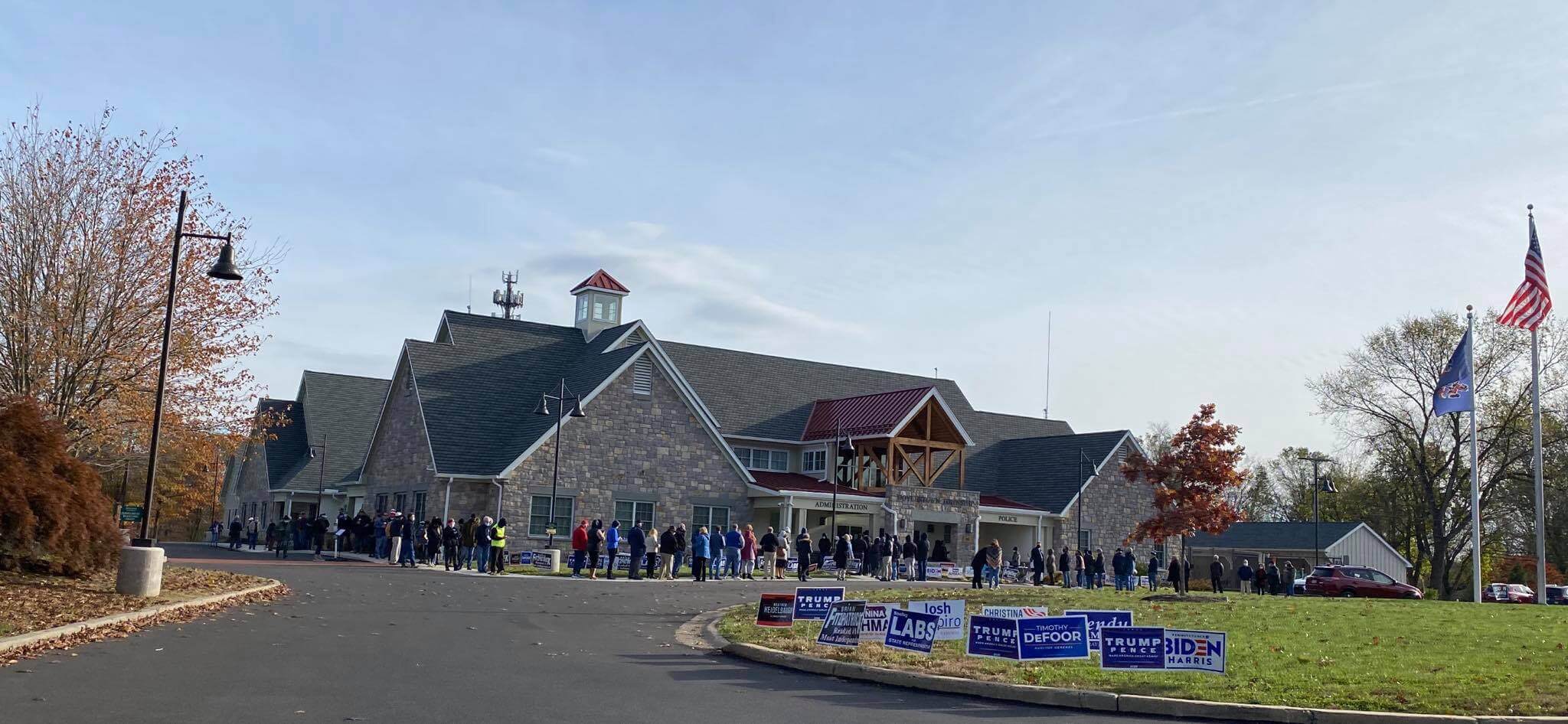 Two lines at Valley Elementary School in Bensalem on Tuesday, Nov. 3, 2020. (Courtesy of Gema María Duarte)