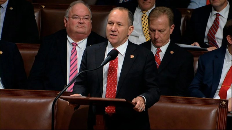 Rep. Lloyd Smucker, R-Pa., speaks on the House floor as the House of Representatives debates the articles of impeachment against President Donald Trump at the Capitol during Trump's first impeachment in 2019. (House Television via AP)