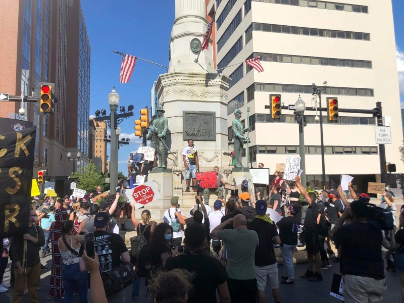 Hundreds of people marched in downtown Allentown on Monday night, calling for the officer to be fired and police funds to be reallocated to education, mental health and other social services.