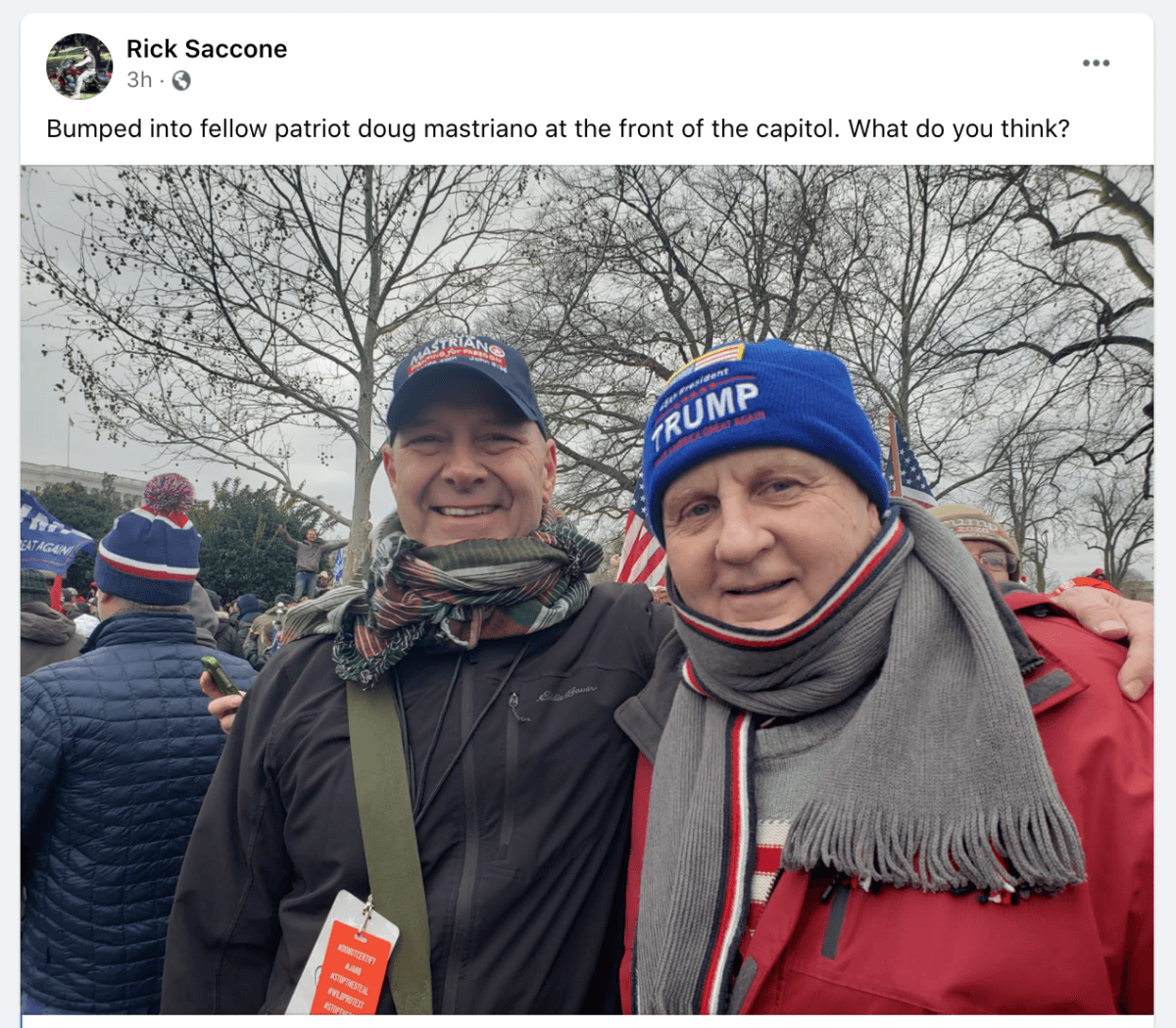 Saccone also shared a photo of himself with state Sen. Doug Mastriano, R-Adams. It’s unclear whether Mastriano participated in the attack on the Capitol.