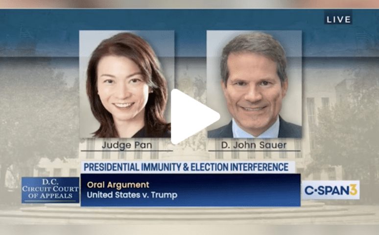 Sauer argued that because Trump wasn’t impeached and removed from office, he should be protected from criminal prosecution over his plot to overturn the 2020 presidential election and any criminal actions connected to it.