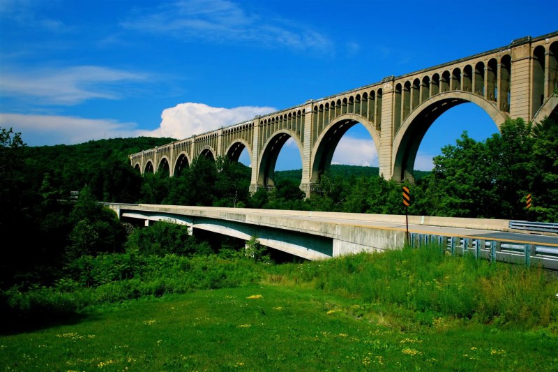 The Viaduct Valley Way Scenic Byway, made up of PA 92 and PA 171, is named so for a reason: there are two viaducts along this 37-mile stretch of highway that are not only historic, but stunning. At the time of its construction, the Starrucca Viaduct in Lanesboro was the biggest and most expensive railroad bridge in the world. This viaduct was built in 1848 at a cost of $320,000—more than $10 million in today’s dollars. Meanwhile, the Tunkhannock Creek Viaduct in Nicholson, built in 1915, remains the world’s largest concrete railroad bridge. Starting your drive near Dixon and ending near Lanesboro, you’ll also pass charming towns and scenic vistas as you travel through Pennsylvania’s Endless Mountains.