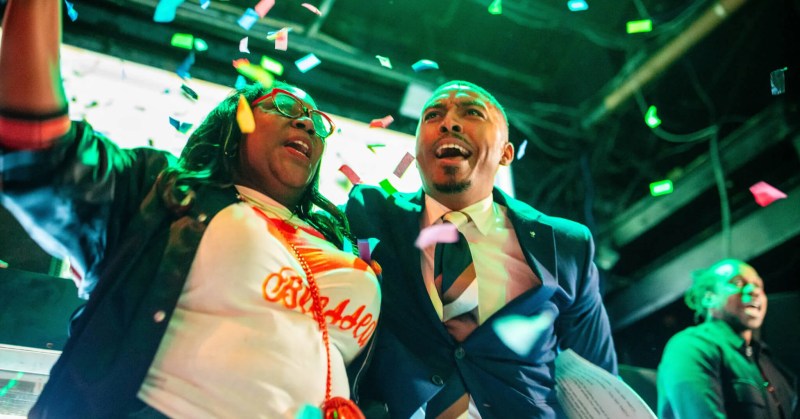 Supporters and organizers with the Working Families Party, a progressive third party, celebrated into the early morning hours in Philadelphia on Wednesday after two of their members, Kendra Brooks and Nicolas O’Rourke, won their at-large campaigns for city council.