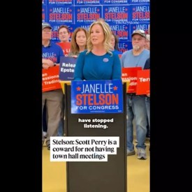 WATCH: Janelle Stelson calls out US House Rep. Scott Perry (R-York) for not holding a town hall in over six-and-a-half years.